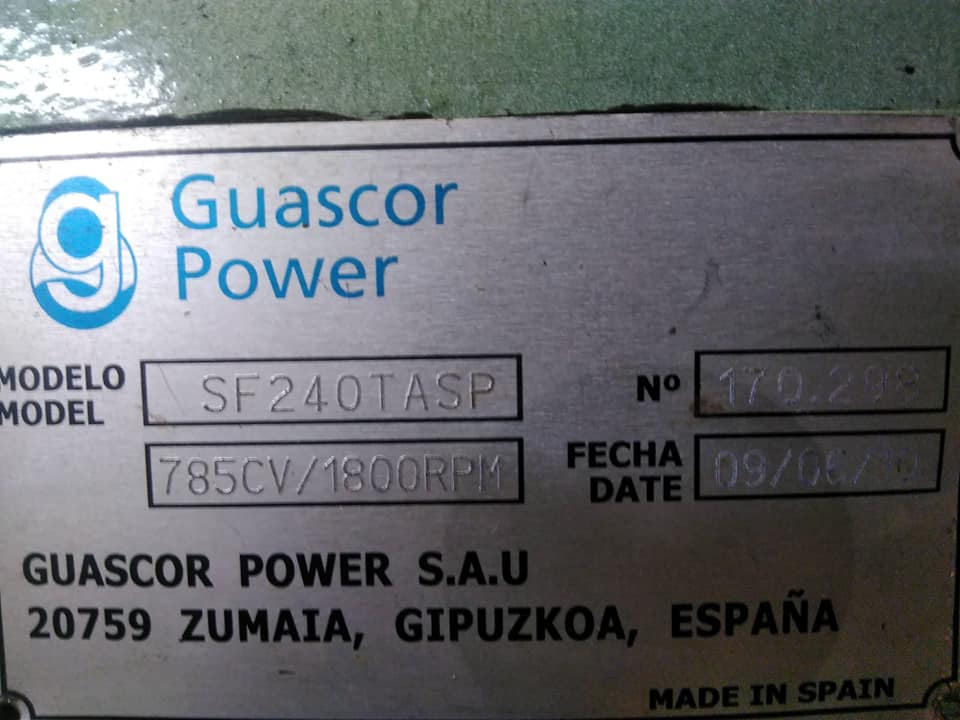ref#MA00032 Marca: GUASCOR Modelo: SF240 Potencia: 780HP RPM: 1800 Numero de horas 2014 Condiciones generales: Revisado y funcionando Motor en venta Consultar precio