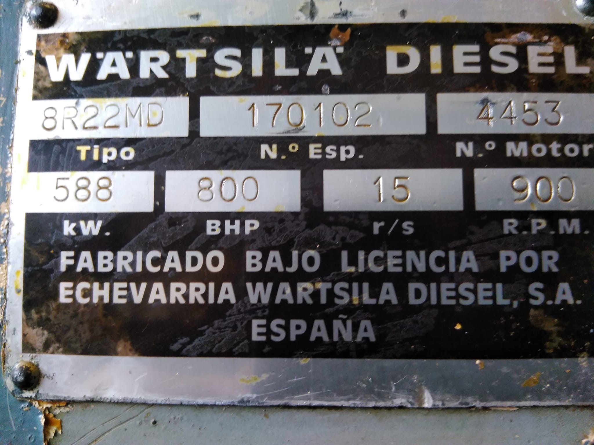 ref#WA00014 Marca: WARTSILA Modelo: 8R22 Potencia: 1480 HP RPM: 900 Numero de horas 1427 Condiciones generales: funcionando probado y testado Motor en venta Consultar precio